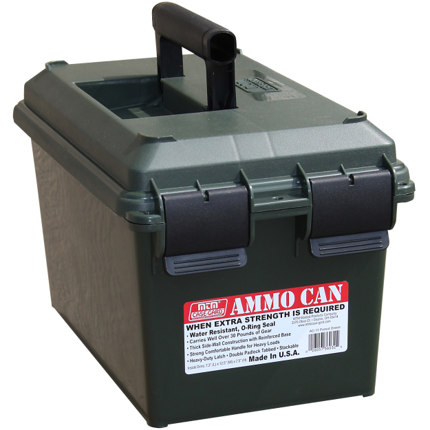 Close in size to the Big 50 Cal Ammon box, this O-Ring sealed ammo can offers the perfect solution to so many storage needs. Made to carry anything from bulk ammo to decoy weights to pet food. Our Ammo Can easily handles 30 pounds of gear in an easy to transport package. It provides excellent, water resistant protection along with extraordinary durability. Molded out of rugged polypropylene plastic and has a comfortably handle holds up to some pretty rough treatment. The Ammo Can offers a heavy-duty dual latches for better sealing, double padlock tabs and molded-in stacking ridges for slip resistant stacking. Great for protection in basements, garages or storage sheds. The ammo can does not have a tray on the inside.