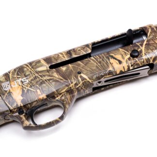 The JTS FX12 semi-automatic shotgun offers exceptional value to the hunting enthusiast. With an inertia system able to take 2-3/4″ or 3″ shells and a chrome lined barrel, this is a workhorse shotgun willing to spend as much time in the field as you are. Includes 5 chokes for versatile usability and a sling hook for easy addition of your favourite sling. Available in a black synthetic finish as well as a waterfowl camo.