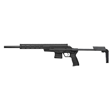 This compact, yet accurate, bolt-action rifle features a four-position telescopic shoulder stock with a cheekpiece on the left side.
