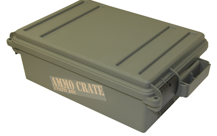 Designed for ammo storage, although perfect for storing shooting, hunting or survival gear. Ideal for Shotshell storage with it holding 1 flat or 10 boxes of 12 gauge target loads. Two extra strong handles make it easy to carry 65 pounds gear. Designed to be stacked high, using molded-in stacking ridges. Four tie down points for ATV attachment. Utilizing MTM’s tongue and groove O-Ring seal system for a superior water-resistant dry storage. Double padlock tabs along with two strong latches make these ammo crates the perfect solution to so many storage needs. Made in the USA, with high-impact polypropylene plastic. Can be used as a boaters dry storage box, first aid, safety and RV camper storage container.