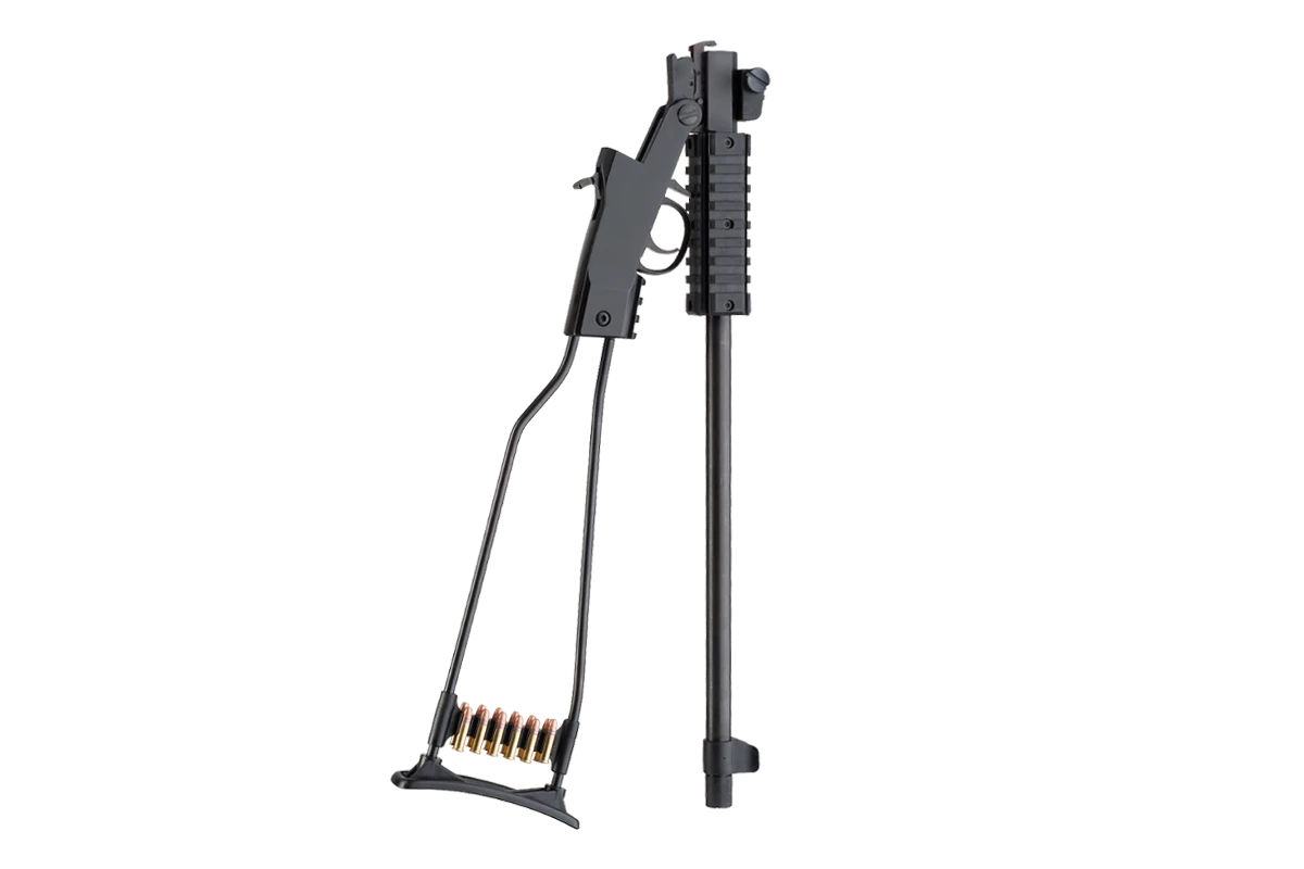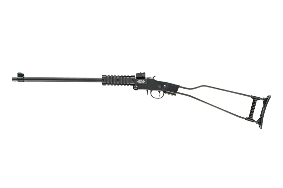 The Little Badger is a great little backpack gun. It folds down easily to the length of its barrel and is extremely light and convenient to carry. This single shot .22 features a quad rail, front and rear adjustable sights, and a 12-shot cartridge holder. Comes with nylon carry-bag.