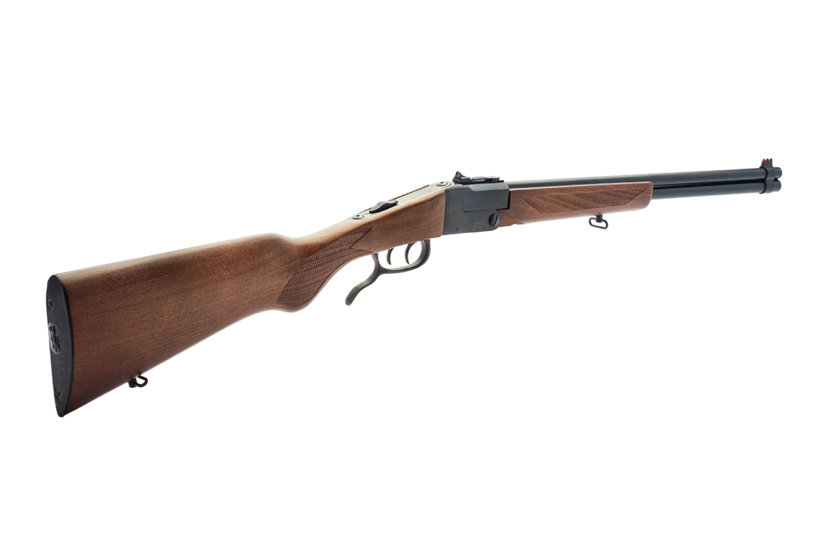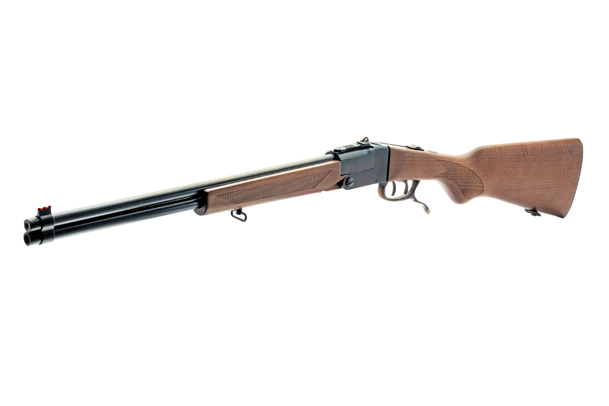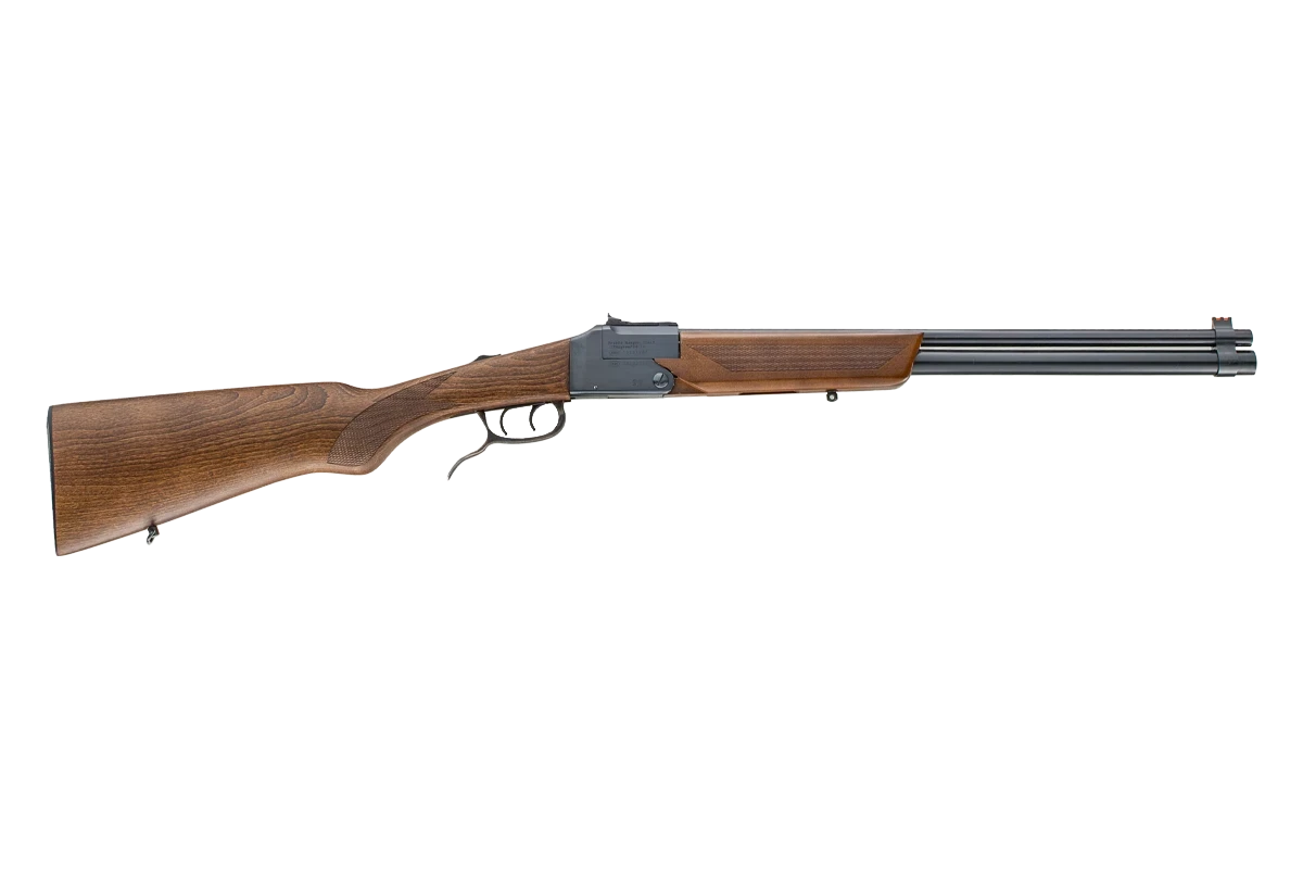 - Barrel: 19″, O/U, .22LR with 1:16 twist, .410 Smoothbore with Fixed Full Choke