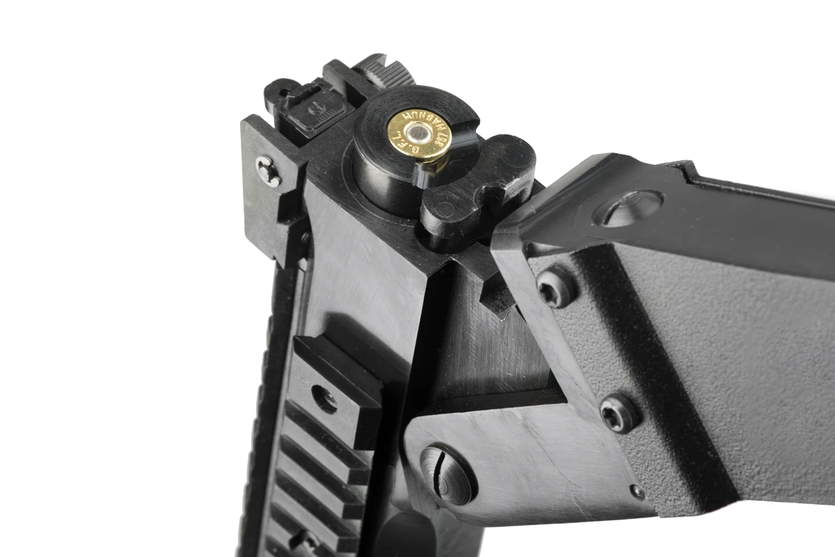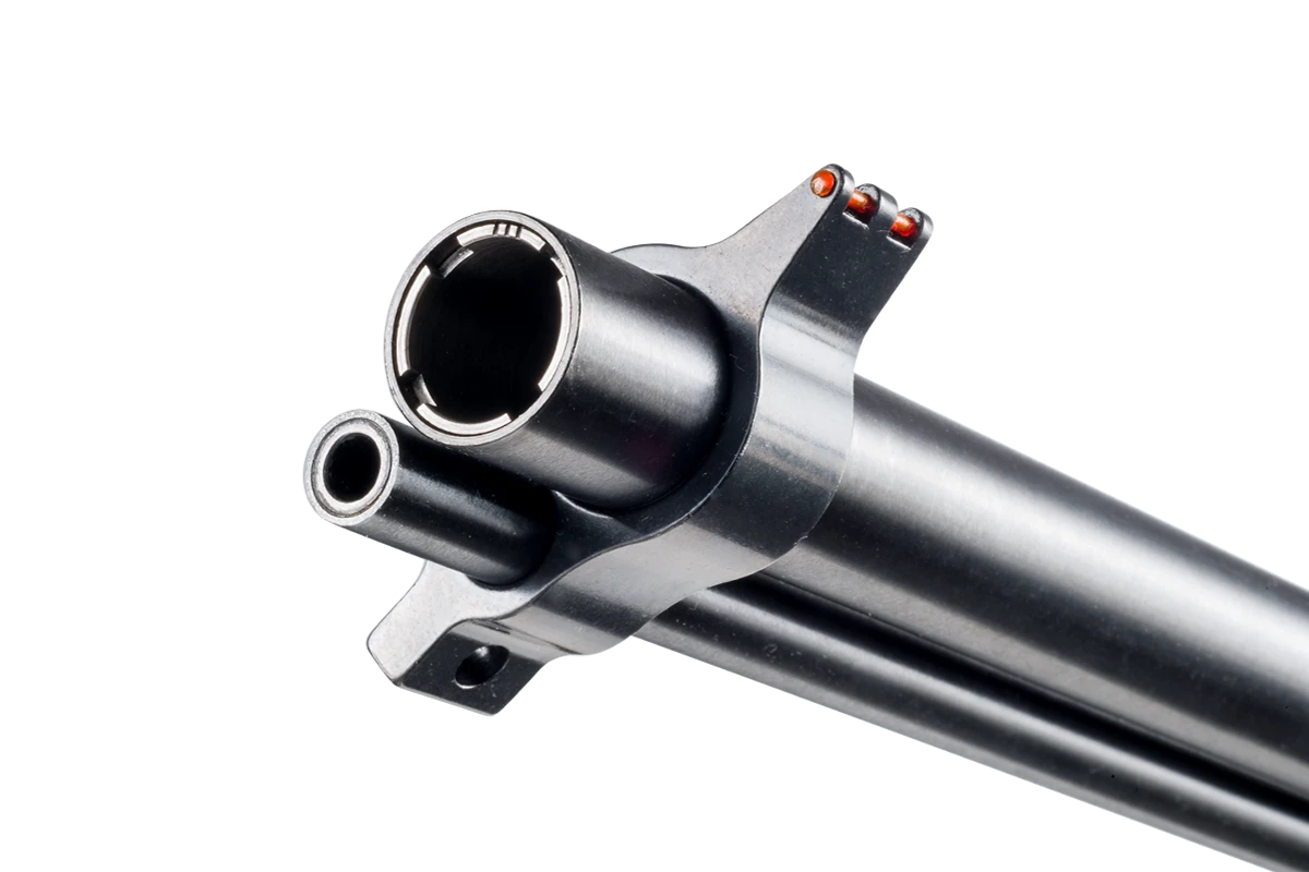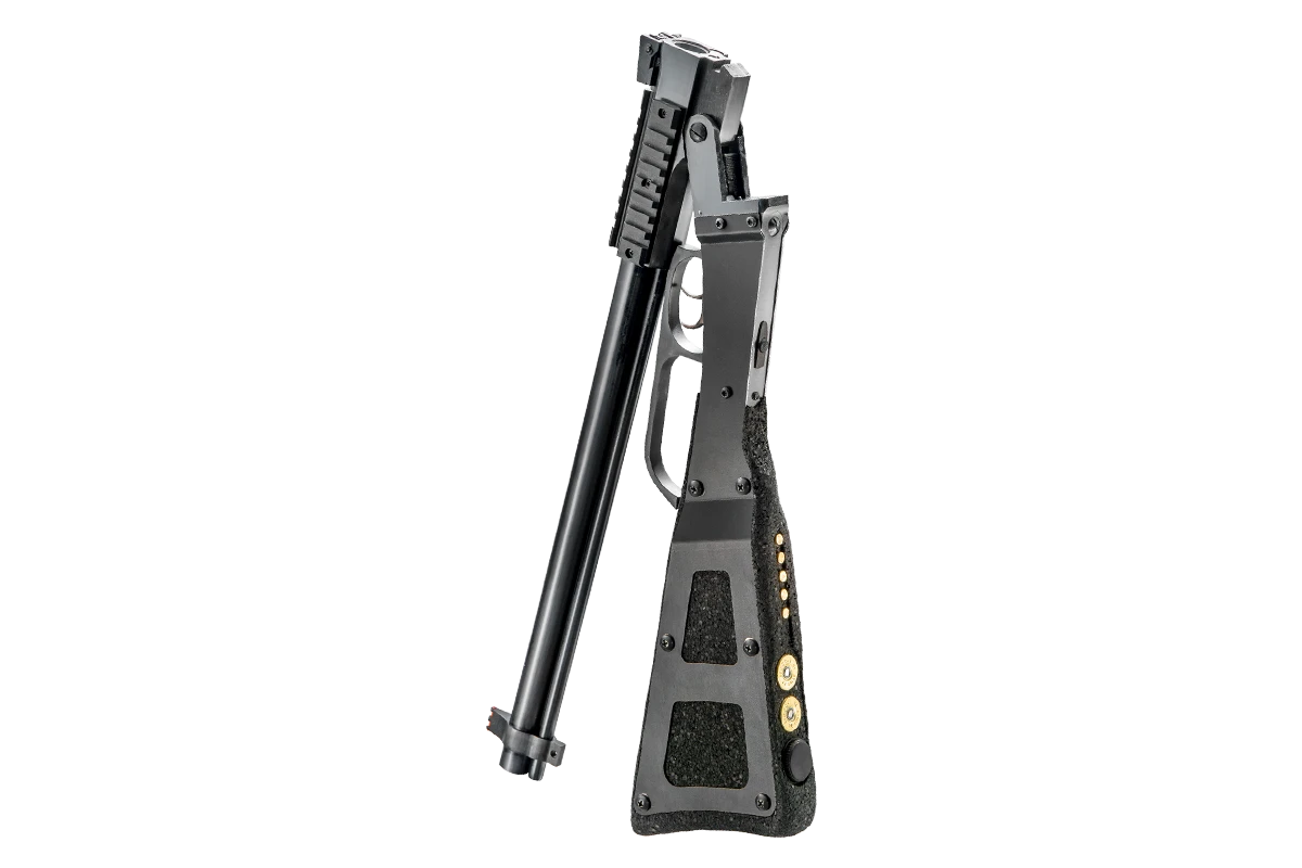 The Chiappa M6 folding survival gun is perfect for outdoorsman, ranchers, pilots or anyone who needs a portable, rugged and reliable shotgun/rifle combination. Based on the original M6, Chiappas improved version has updated features to meet the needs of todays shooters. Barrels can be fired quickly and selectively, each having its own trigger. The M1 carbine style rear sight and fiber optic front sight make aiming either barrel quick and accurate, even in low light. Receiver mounted Picatinny rails on the top and sides allow for mounting optics, lights, lasers or other accessories.