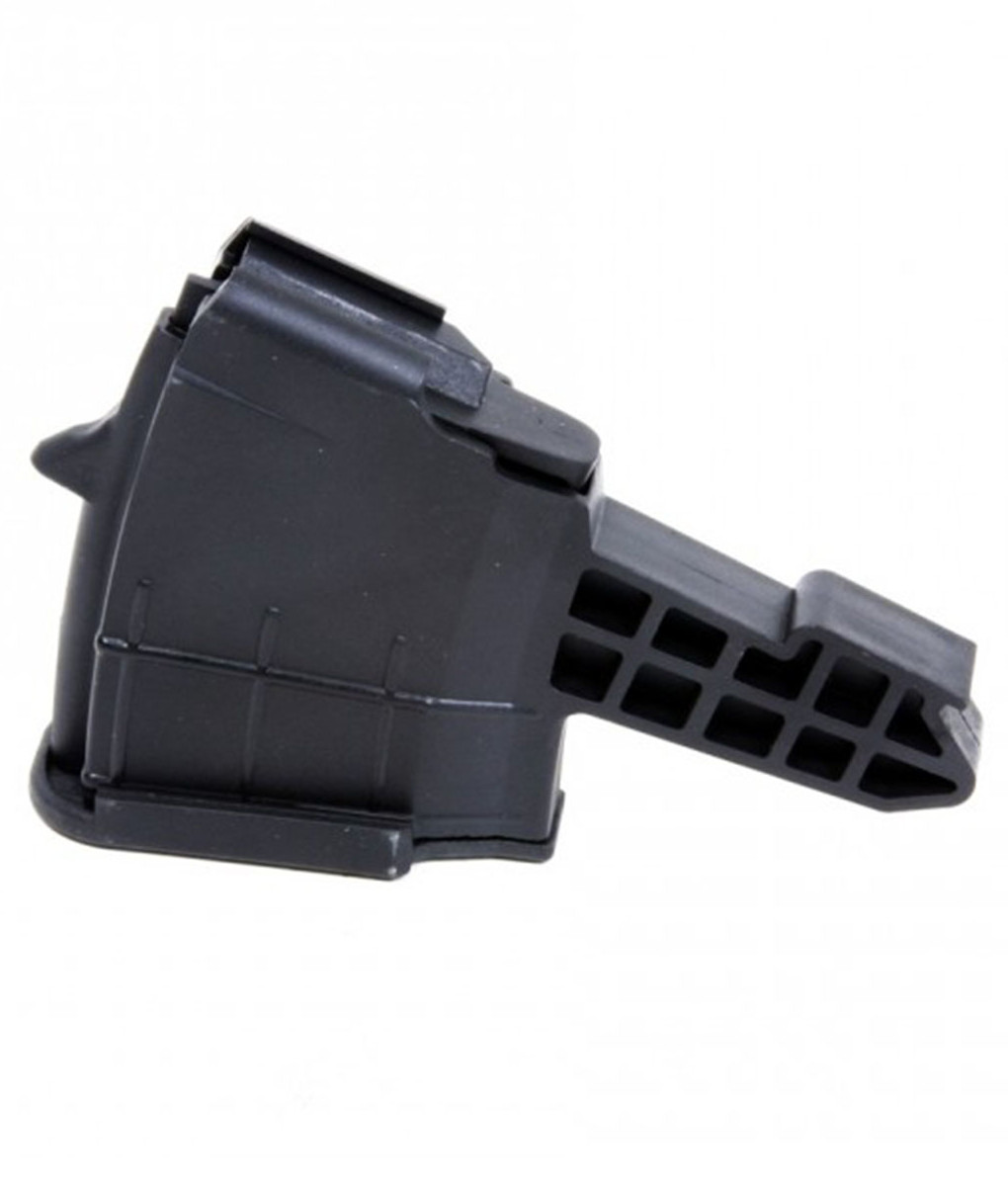 This is a ProMag SKS Magazine in 7.62x39mm. The ProMag provides fast, reliable ammo delivery, and this magazine holds 5 rounds and has a self-lubricating, polycarbonate follower with a precision wound, heat treated, chrome silicon spring. It has a removable base plate that allows easy disassembly for cleaning, and the magazine is made of polymer. ProMag magazines include a lifetime guarantee, if you ever have a problem with their magazines; simply return them to ProMag for replacement.